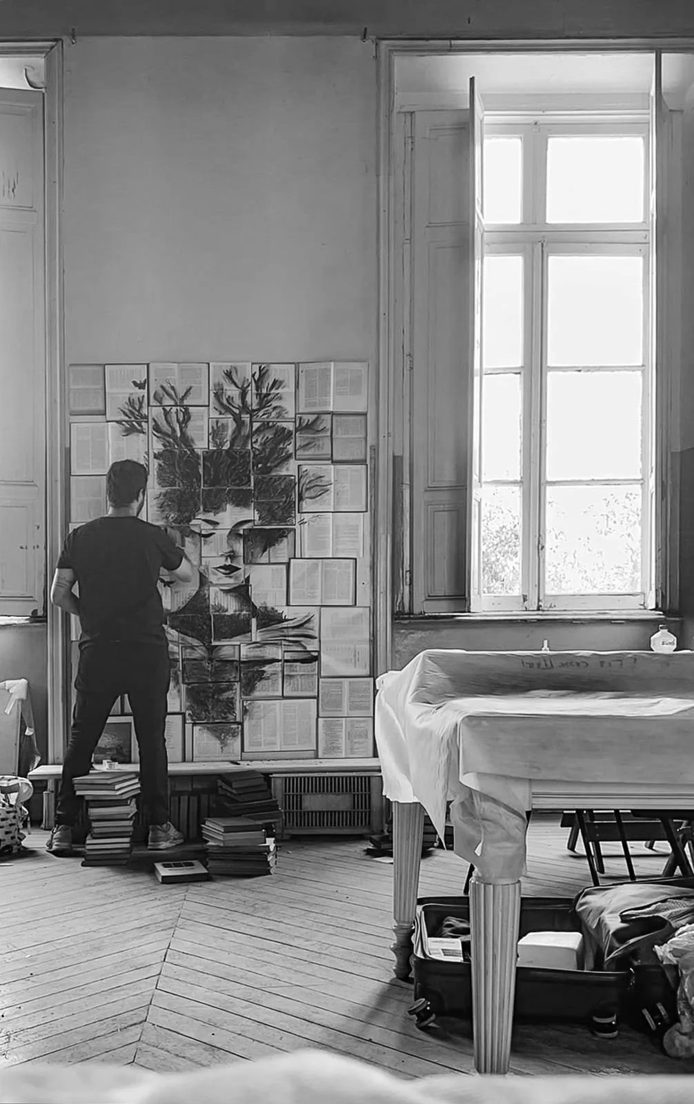 Na obra “Amor a literatura”, Arthur Grangeia utiliza carvão para criar uma pintura sobre um conjunto de livros antigos, formando uma tela única e tridimensional. A figura central é uma deusa que simboliza a união entre a literatura e a natureza. Com raízes que se estendem pelas páginas dos livros, a deusa representa o crescimento e a expansão do conhecimento através da leitura. A escolha dos livros usados como suporte não é apenas uma homenagem à literatura, mas também um convite à sustentabilidade e ao reaproveitamento de materiais. Esta obra busca inspirar os espectadores a redescobrir o prazer da leitura e a conexão profunda entre a natureza e o saber.